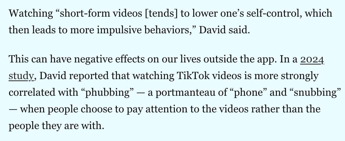The Washington Post has a great post on how TikTok keeps its using wasting hours a day on its platform. (Free with email signup, just unsubscribe after).